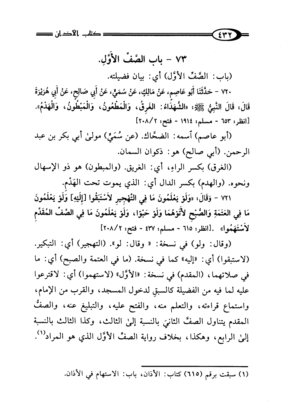 (¬1) سبقت برقم (615) كتاب: الأذان، باب: الاستهام في الأذان.