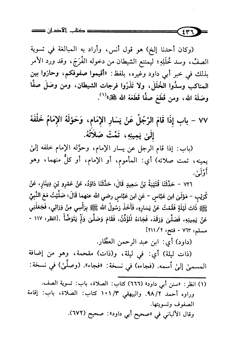 (¬1) انظر: "سنن أبي داود" (666) كتاب: الصلاة، باب: تسوية الصف.