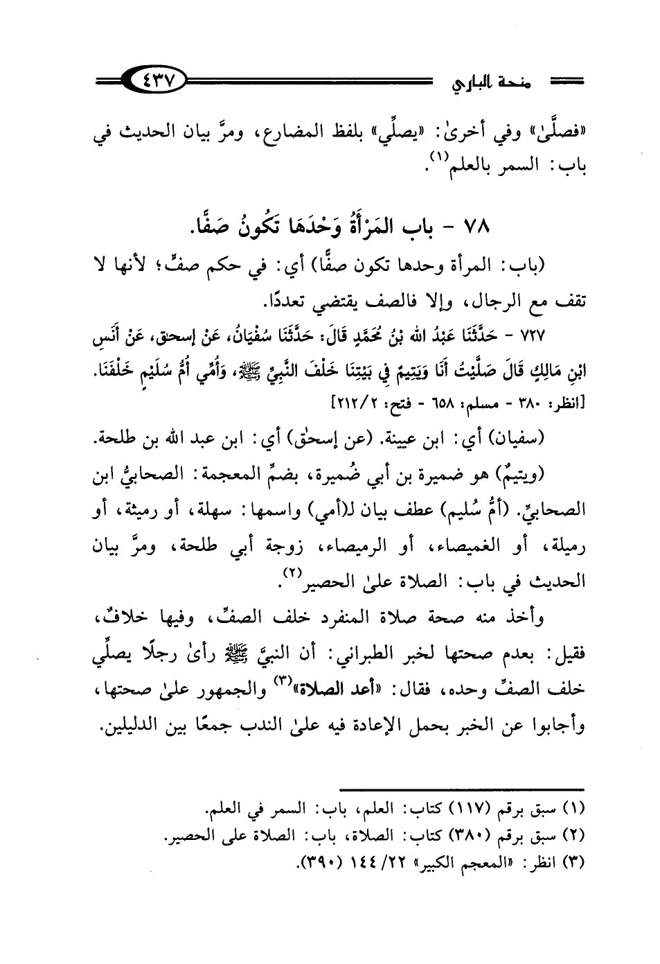 78 - بَابٌ: المَرْأَةُ وَحْدَهَا تَكُونُ صَفًّا
