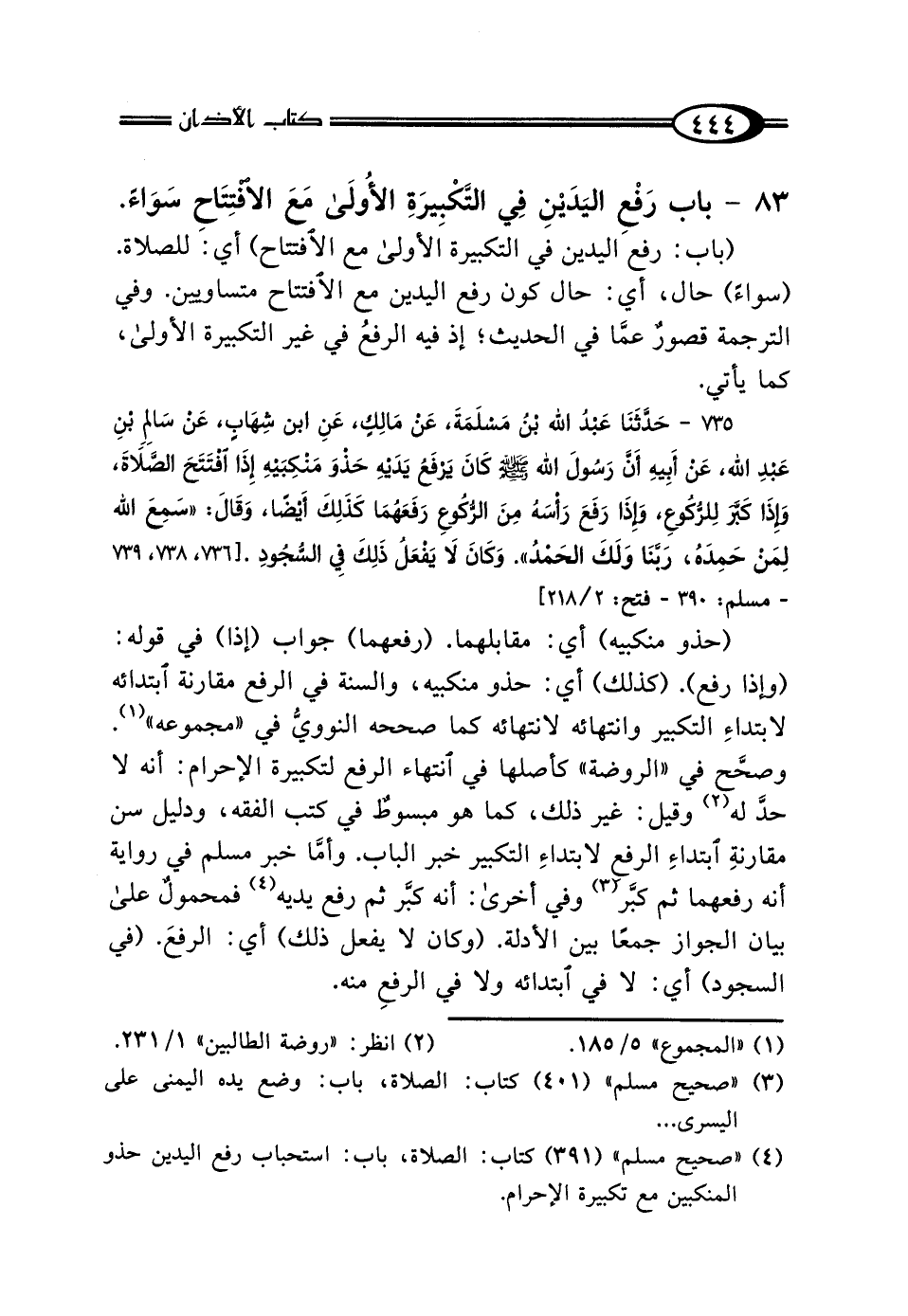 (¬4) "صحيح مسلم" (391) كتاب: الصلاة، باب: استحباب رفع اليدين حذو المنكبين مع تكبيرة الإحرام.
