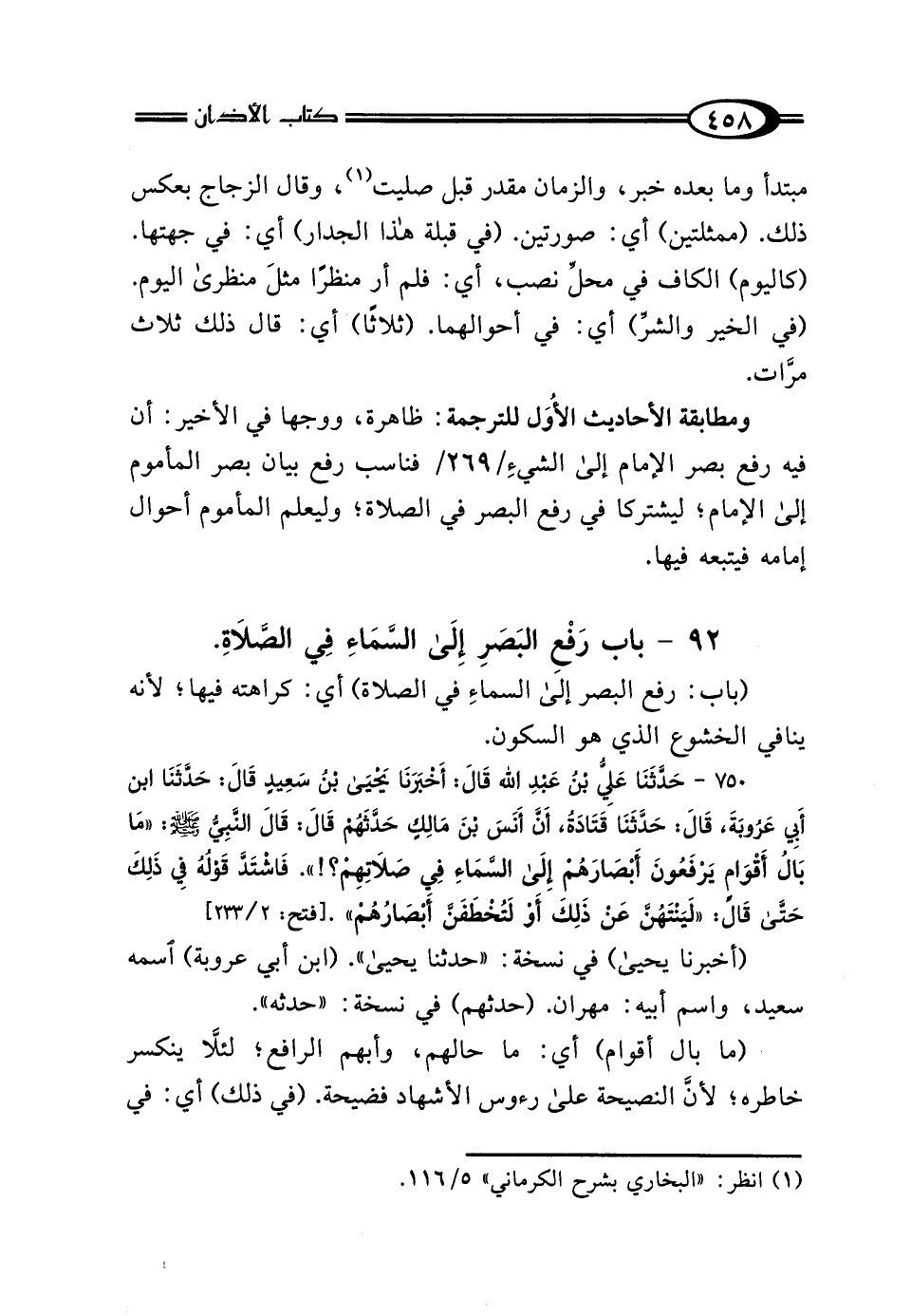 92 - بَابُ رَفْعِ البَصَرِ إِلَى السَّمَاءِ فِي الصَّلاةِ