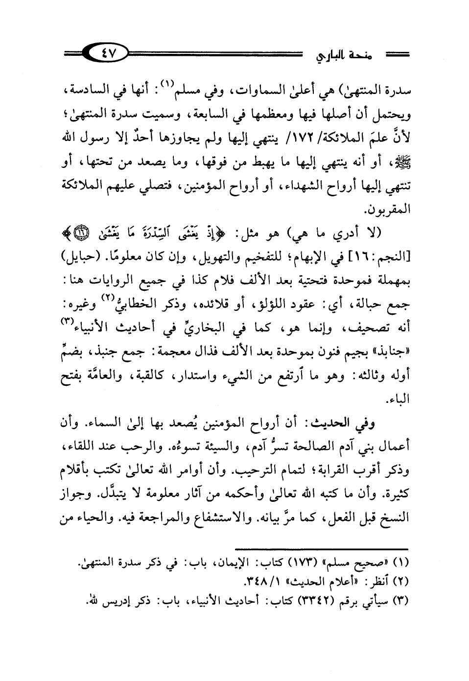 (¬1) "صحيح مسلم" (173) كتاب: الإيمان، باب: في ذكر سدرة المنتهى.