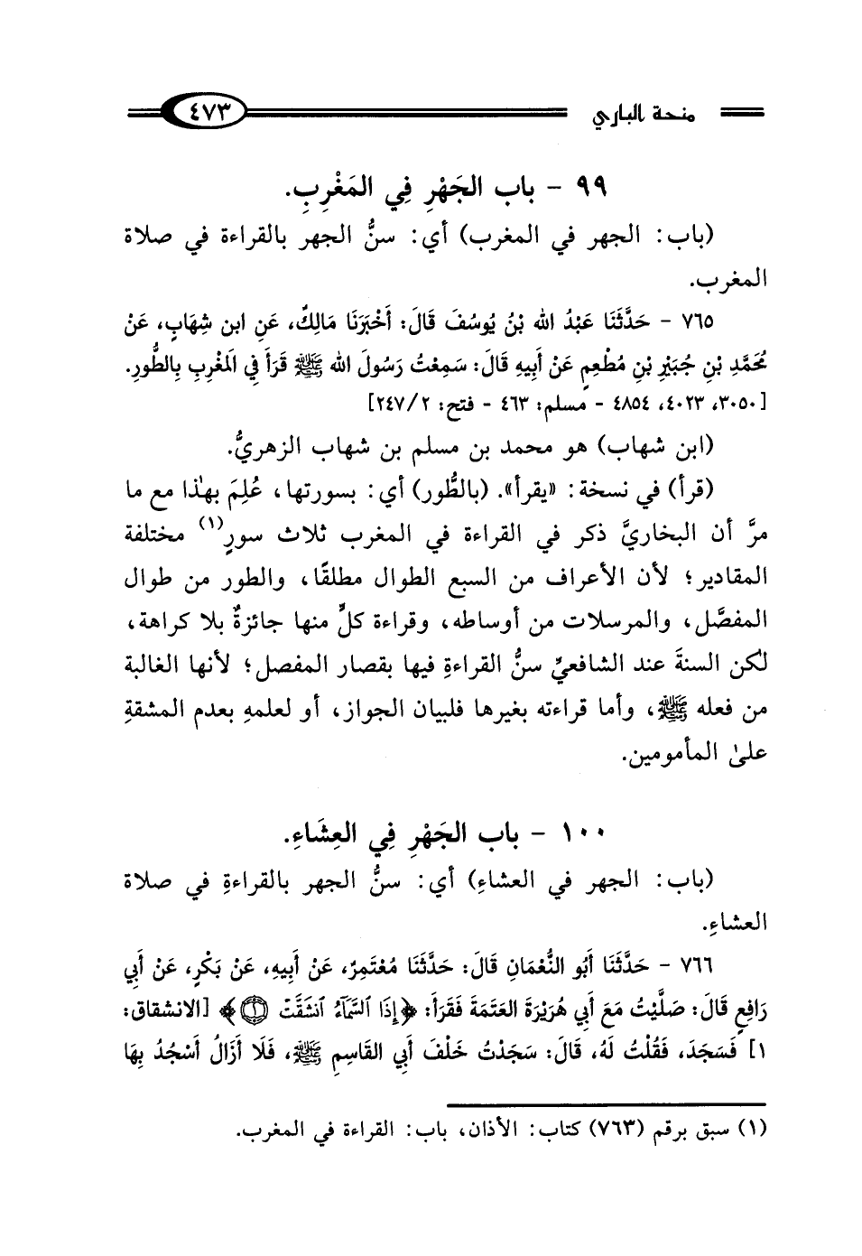 99 - بَابُ الجَهْرِ فِي المَغْرِبِ