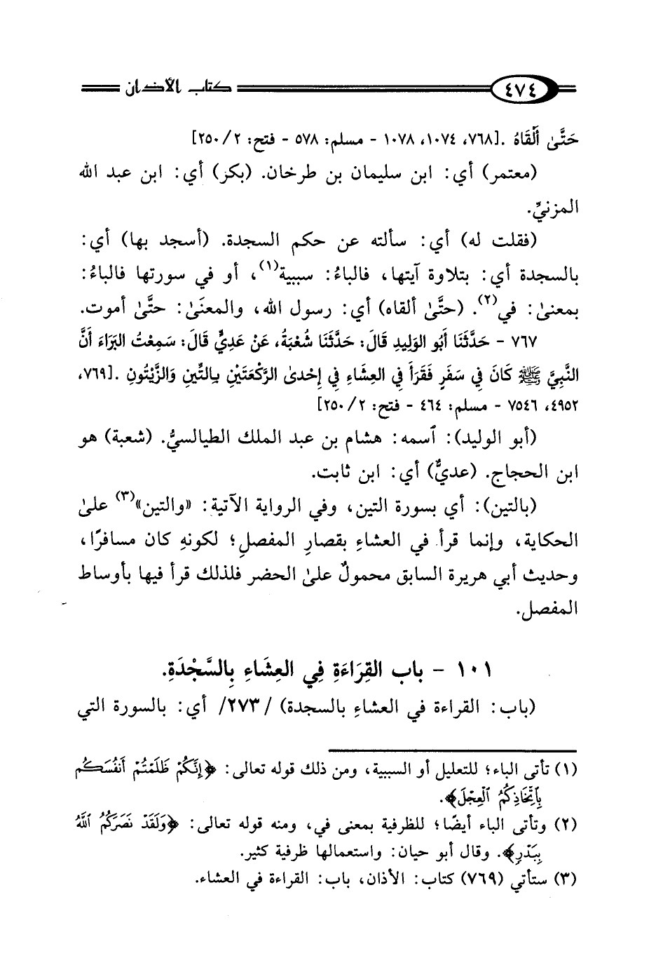 101 - بَابُ القِرَاءَةِ فِي العِشَاءِ بِالسَّجْدَةِ