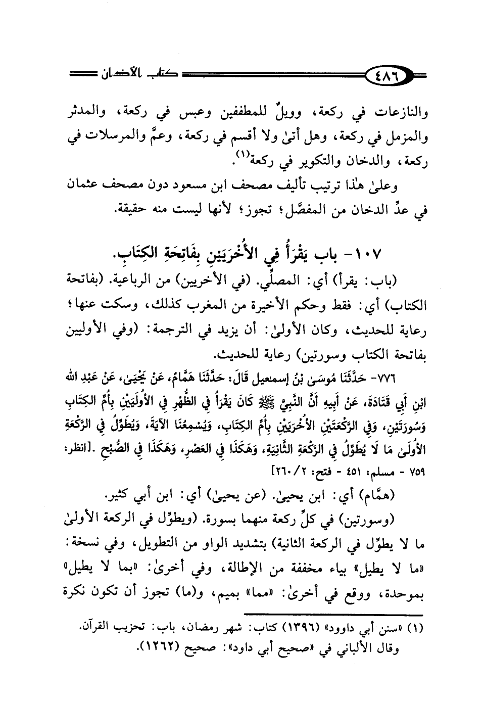 107 - بَابٌ: يَقْرَأُ فِي الأُخْرَيَيْنِ بِفَاتِحَةِ الكِتَابِ