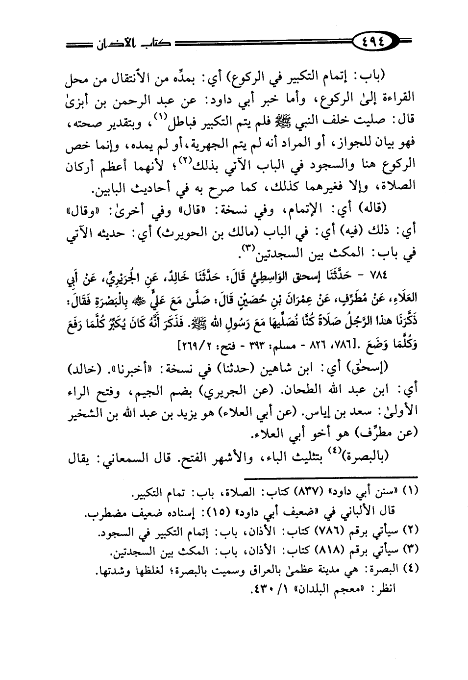(¬1) "سنن أبي داود" (837) كتاب: الصلاة، باب: تمام التكبير.