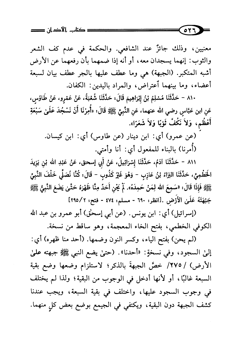 811 - حَدَّثَنَا آدَمُ، حَدَّثَنَا إِسْرَائِيلُ، عَنْ أَبِي إِسْحَاقَ، عَنْ عَبْدِ اللَّهِ بْنِ يَزِيدَ الخَطْمِيِّ، حَدَّثَنَا البَرَاءُ بْنُ عَازِبٍ، - وَهُوَ غَيْرُ كَذُوبٍ -، قَال: "كُنَّا نُصَلِّي خَلْفَ النَّبِيِّ صَلَّى اللهُ عَلَيْهِ وَسَلَّمَ فَإِذَا قَال: سَمِعَ اللَّهُ لِمَنْ حَمِدَهُ، لَمْ يَحْنِ أَحَدٌ مِنَّا ظَهْرَهُ حَتَّى يَضَعَ النَّبِيُّ صَلَّى اللهُ عَلَيْهِ وَسَلَّمَ جَبْهَتَهُ عَلَى الأَرْضِ".