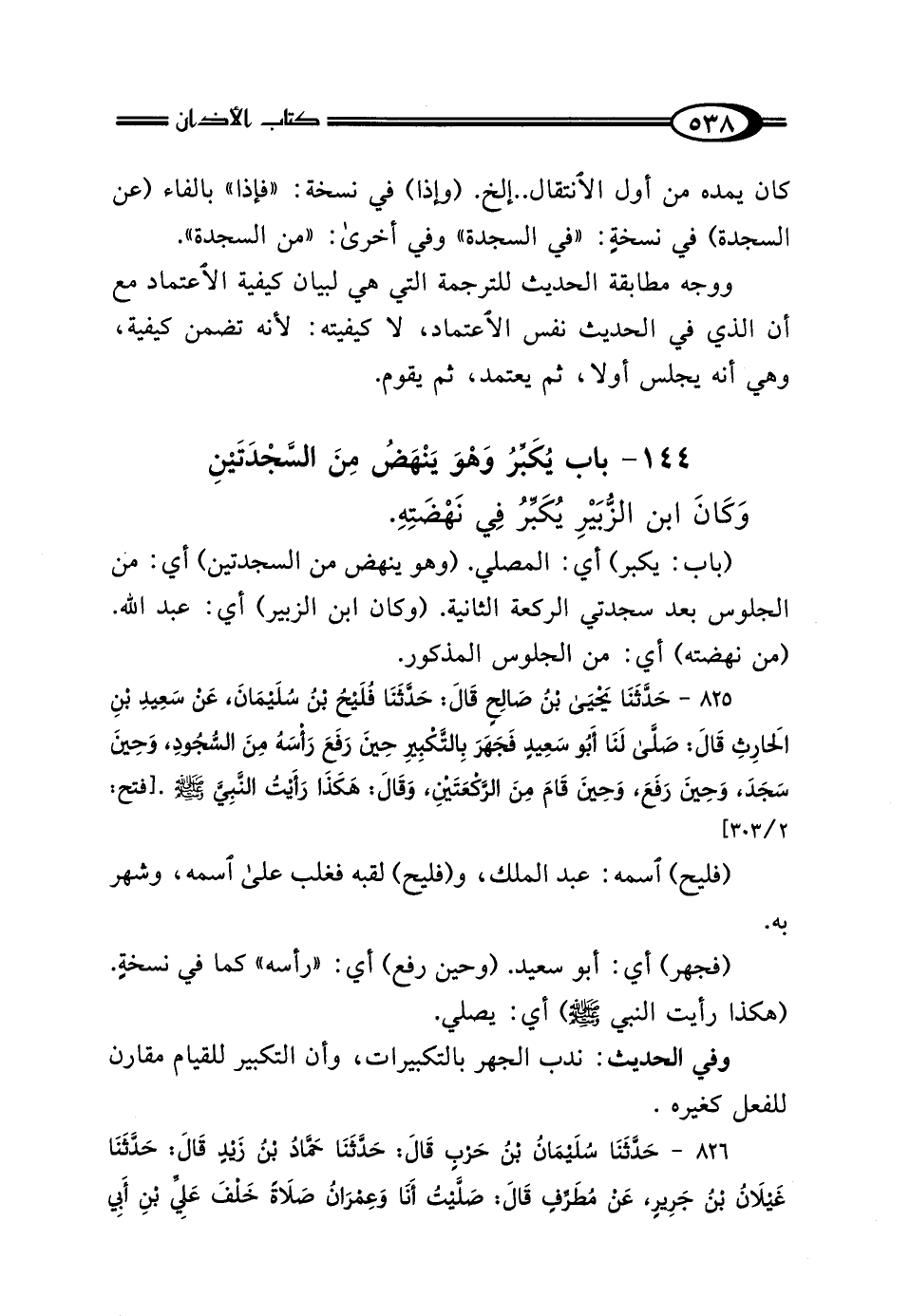 825 - حَدَّثَنَا يَحْيَى بْنُ صَالِحٍ، قَال: حَدَّثَنَا فُلَيْحُ بْنُ سُلَيْمَانَ، عَنْ سَعِيدِ بْنِ الحَارِثِ، قَال: صَلَّى لَنَا أَبُو سَعِيدٍ "فَجَهَرَ بِالتَّكْبِيرِ حِينَ رَفَعَ رَأْسَهُ مِنَ السُّجُودِ، وَحِينَ سَجَدَ وَحِينَ رَفَعَ وَحِينَ قَامَ مِنَ الرَّكْعَتَيْنِ" وَقَال: هَكَذَا رَأَيْتُ النَّبِيَّ صَلَّى اللهُ عَلَيْهِ وَسَلَّمَ.