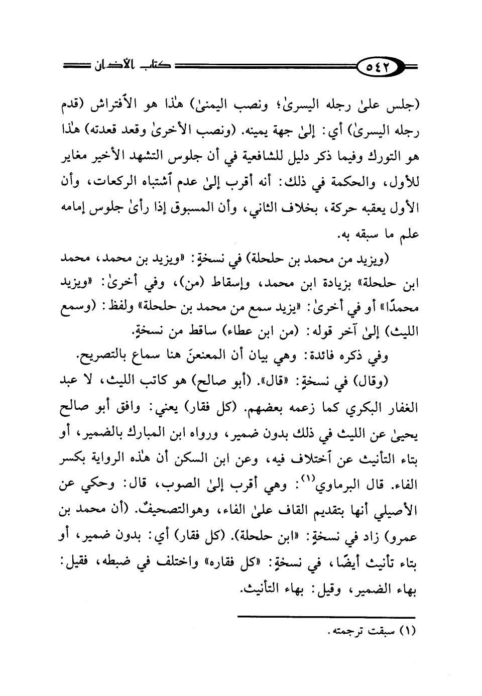 وفي ذكره فائدة: وهي بيان أن المعنعنَ هنا سماع بالتصريح. (وقال) في نسخةٍ: "قال". (أبو صالح) هو كاتب الليث، لا عبد الغفار البكري كما زعمه بعضهم. (كل فقار) يعني: وافق أبو صالح يحيى عن الليث في ذلك بدون ضمير، ورواه ابن المبارك بالضمير، أو بتاء التأنيث عن اختلاف فيه، وعن ابن السكن أن هذه الرواية بكسر الفاء. قال البرماوي (¬1): وهي أقرب إلى الصوب، قال: وحكي عن الأصيلي أنها بتقديم القاف على الفاء، وهو التصحيفٌ. (أن محمد بن عمرو) زاد في نسخةٍ: (ابن حلحلة). (كل فقار) أي: بدون ضمير، أو بتاء تأنيث أيضًا، في نسخةٍ: "كل فقاره" واختلف في ضبطه، فقيل: بهاء الضمير، وقيل: بهاء التأنيث.