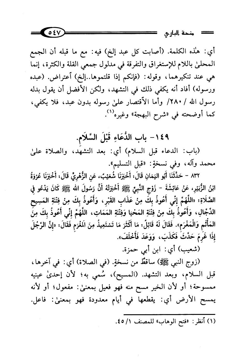 149 - بَابُ الدُّعَاءِ قَبْلَ السَّلامِ