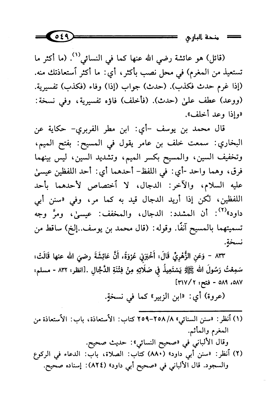 (¬1) انظر: "سنن السنائي" 8/ 258 - 259 كتاب: الاستعاذة، باب: الاستعاذة من المغرم والمأثم.