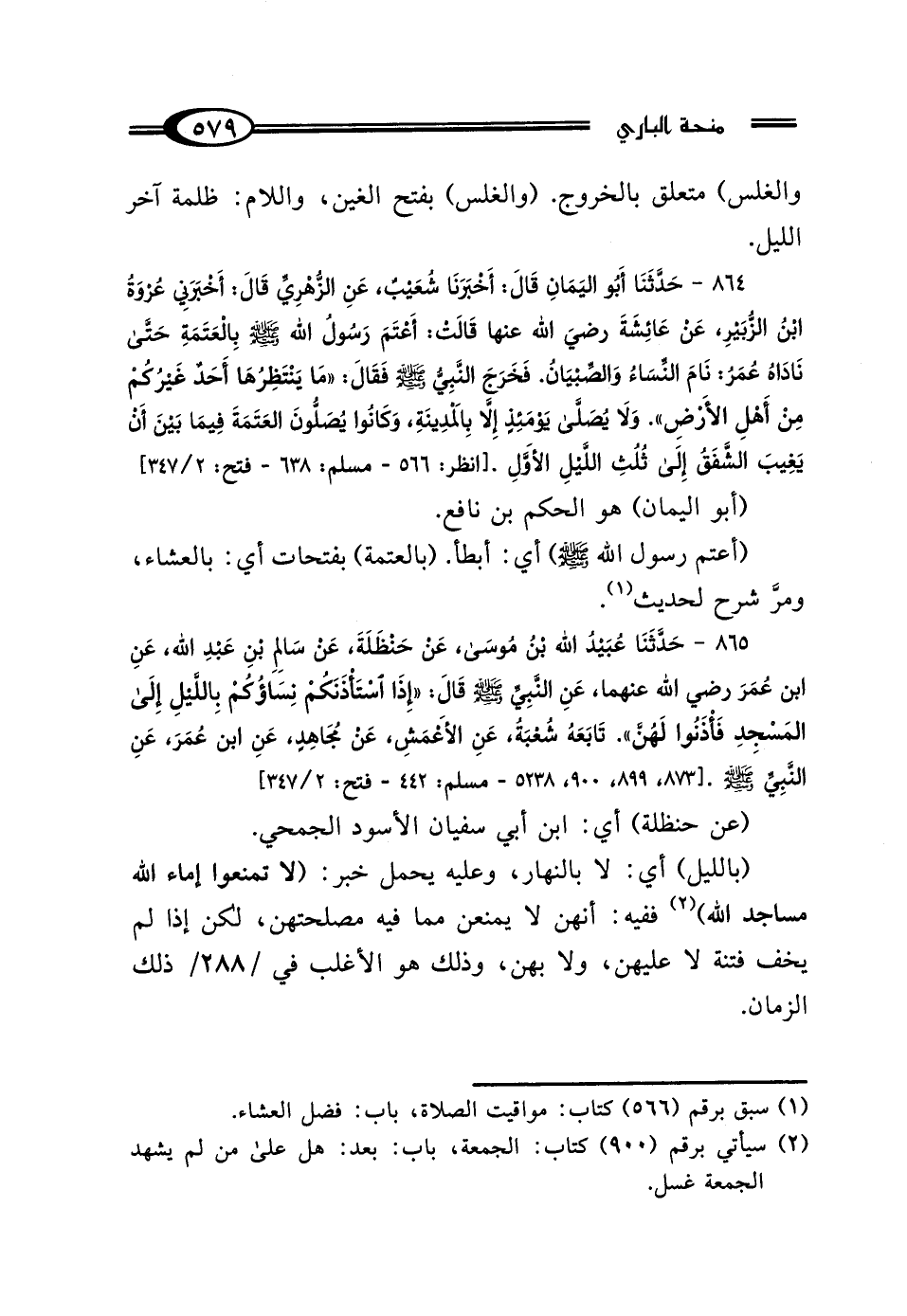 865 - حَدَّثَنَا عُبَيْدُ اللَّهِ بْنُ مُوسَى، عَنْ حَنْظَلَةَ، عَنْ سَالِمِ بْنِ عَبْدِ اللَّهِ، عَنِ ابْنِ عُمَرَ رَضِيَ اللَّهُ عَنْهُمَا، عَنِ النَّبِيِّ صَلَّى اللهُ عَلَيْهِ وَسَلَّمَ قَال: "إِذَا اسْتَأْذَنَكُمْ نِسَاؤُكُمْ بِاللَّيْلِ إِلَى المَسْجِدِ، فَأْذَنُوا لَهُنَّ" تَابَعَهُ شُعْبَةُ، عَنِ الأَعْمَشِ، عَنْ مُجَاهِدٍ، عَنْ ابْنِ عُمَرَ، عَنِ النَّبِيِّ صلى الله عليه وسلم.