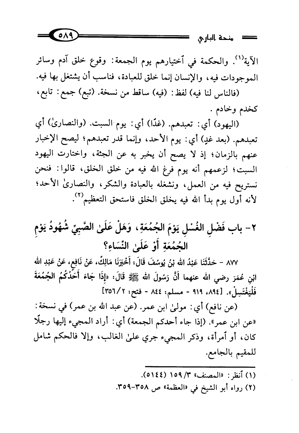 2 - بَابُ فَضْلِ الغُسْلِ يَوْمَ الجُمُعَةِ، وَهَلْ عَلَى الصَّبِيِّ شُهُودُ يَوْمِ الجُمُعَةِ، أَوْ عَلَى النِّسَاءِ؟