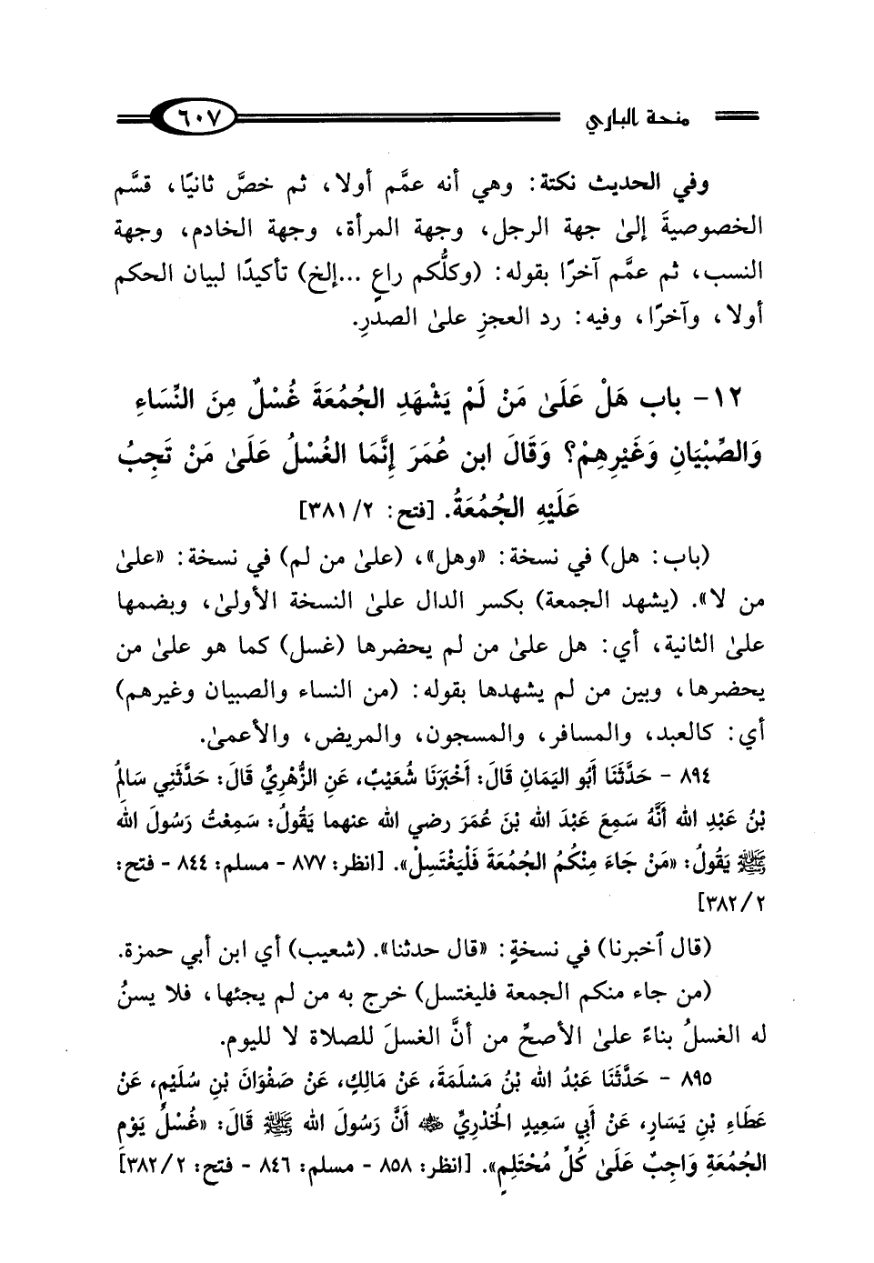 12 - بَابُ هَلْ عَلَى مَنْ لَمْ يَشْهَدِ الجُمُعَةَ غُسْلٌ مِنَ النِّسَاءِ وَالصِّبْيَانِ وَغَيْرِهِمْ؟