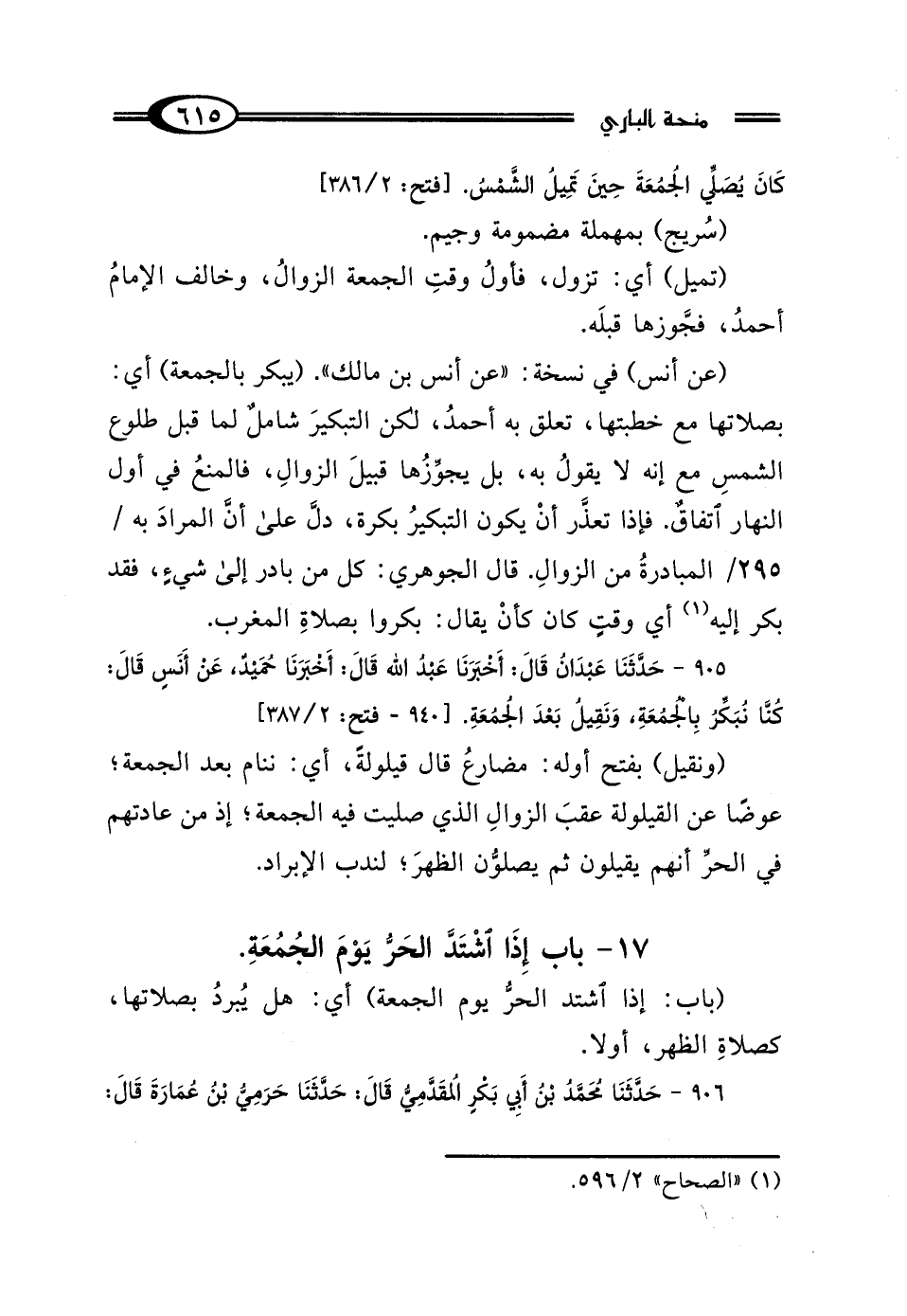 905 - حَدَّثَنَا عَبْدَانُ، قَال: أَخْبَرَنَا عَبْدُ اللَّهِ، قَال: أَخْبَرَنَا حُمَيْدٌ، عَنْ أَنَسِ بْنِ مَالِكٍ، قَال: "كُنَّا نُبَكِّرُ بِالْجُمُعَةِ وَنَقِيلُ بَعْدَ الجُمُعَةِ".