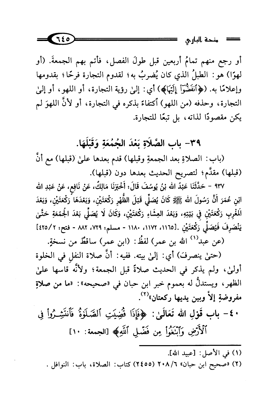 39 - بَابُ الصَّلاةِ بَعْدَ الجُمُعَةِ وَقَبْلَهَا