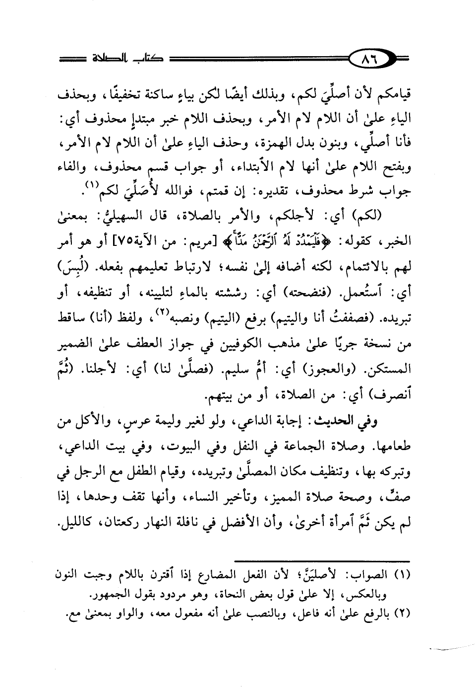 (¬1) الصواب: لأصليَنَّ؛ لأن الفعل المضارع إذا اقترن باللام وجبت النون وبالعكس، إلا على قول بعض النحاة، وهو مردود يقول الجمهور.