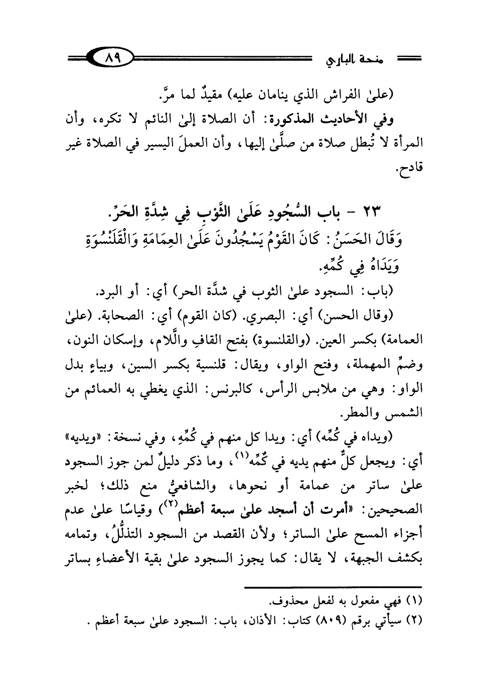 (¬2) سيأتي برقم (809) كتاب: الأذان، باب: السجود على سبعة أعظم.