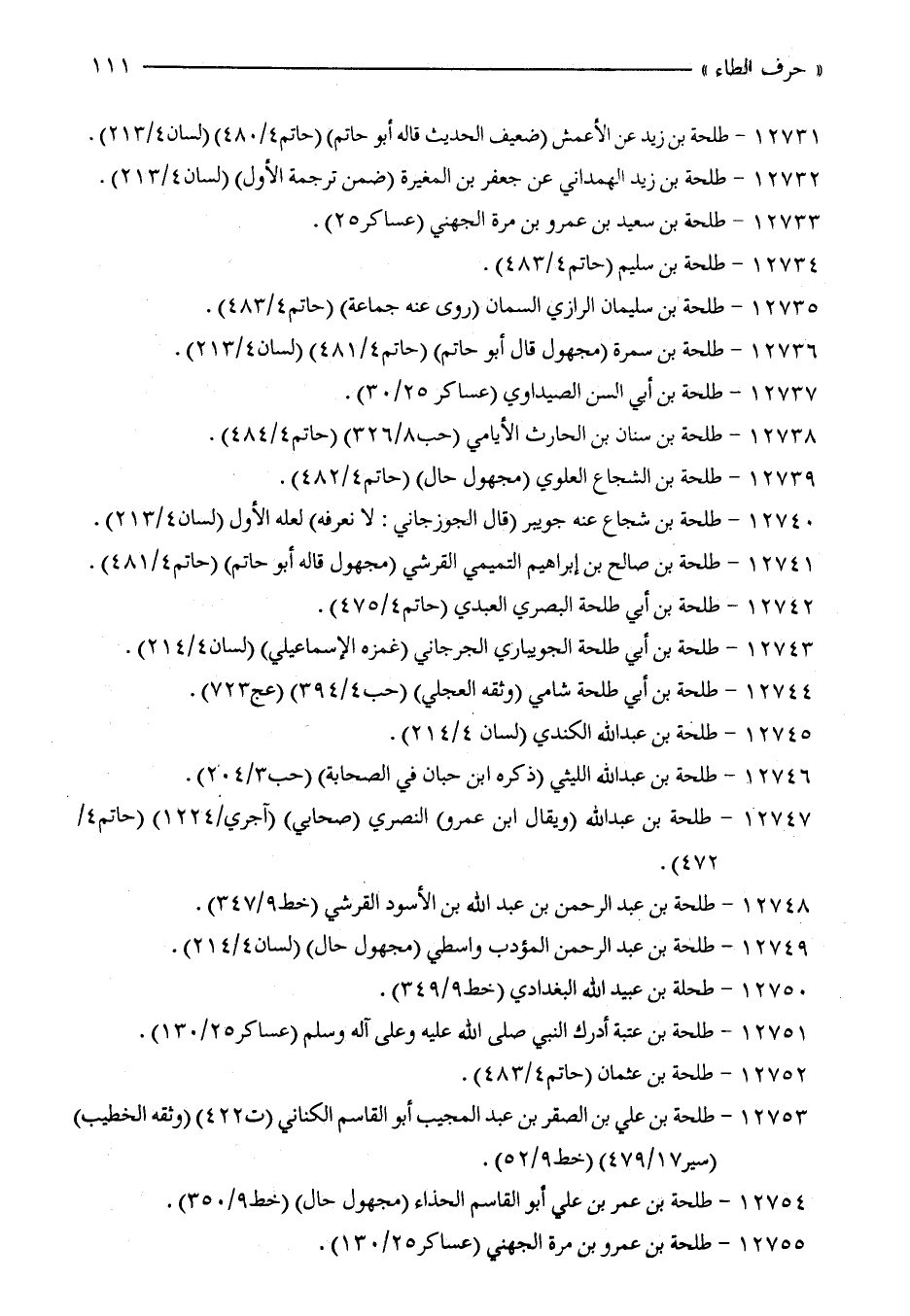 12752 - طلحة بن عثمان (حاتم 4/ 483).