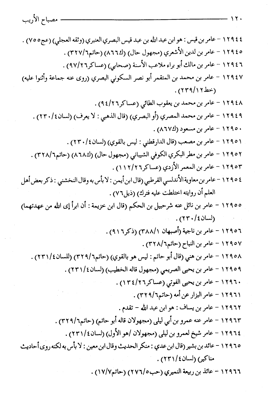 12954 - عامر بن معاوية الأندلسي القرطبي (قال ابن أيمن: لا بأس به وقال النخشني: ذكر بعض أهل العلم أن روايته اختلطت عليه فترك) (ذيل 76).
