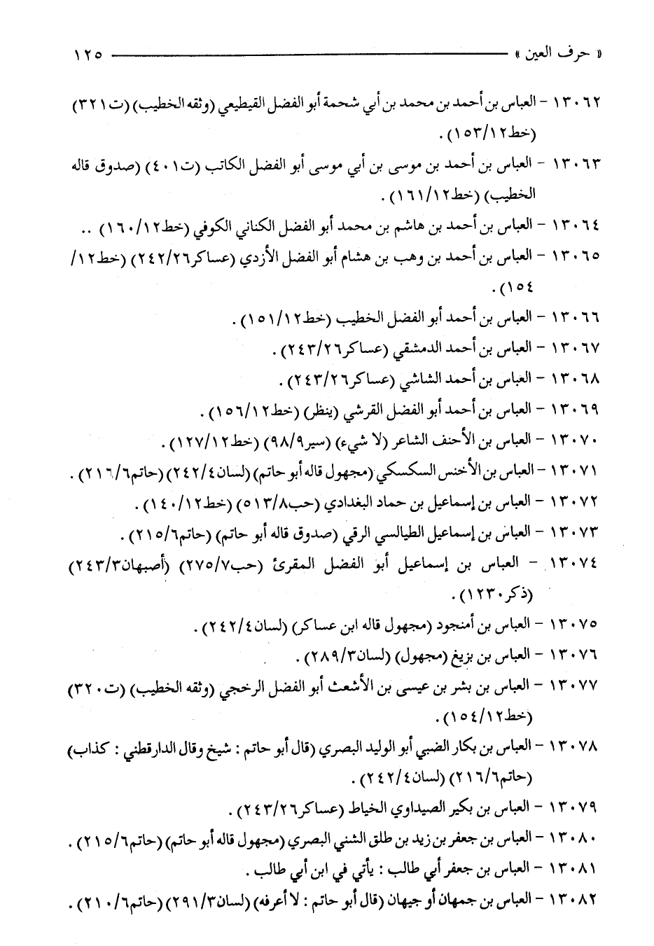 13072 - العباس بن إسماعيل بن حماد البغدادي (حب 8/ 513) (خط 12/ 140).