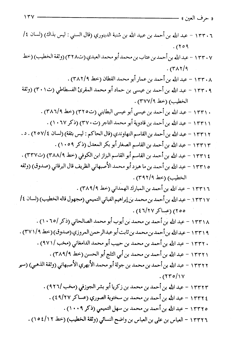 13307 - عبد الله بن أحمد بن عتاب بن محمّد أبو محمّد العبدي (ت 328) (وثقه الخطيب) (خط 9/ 382).