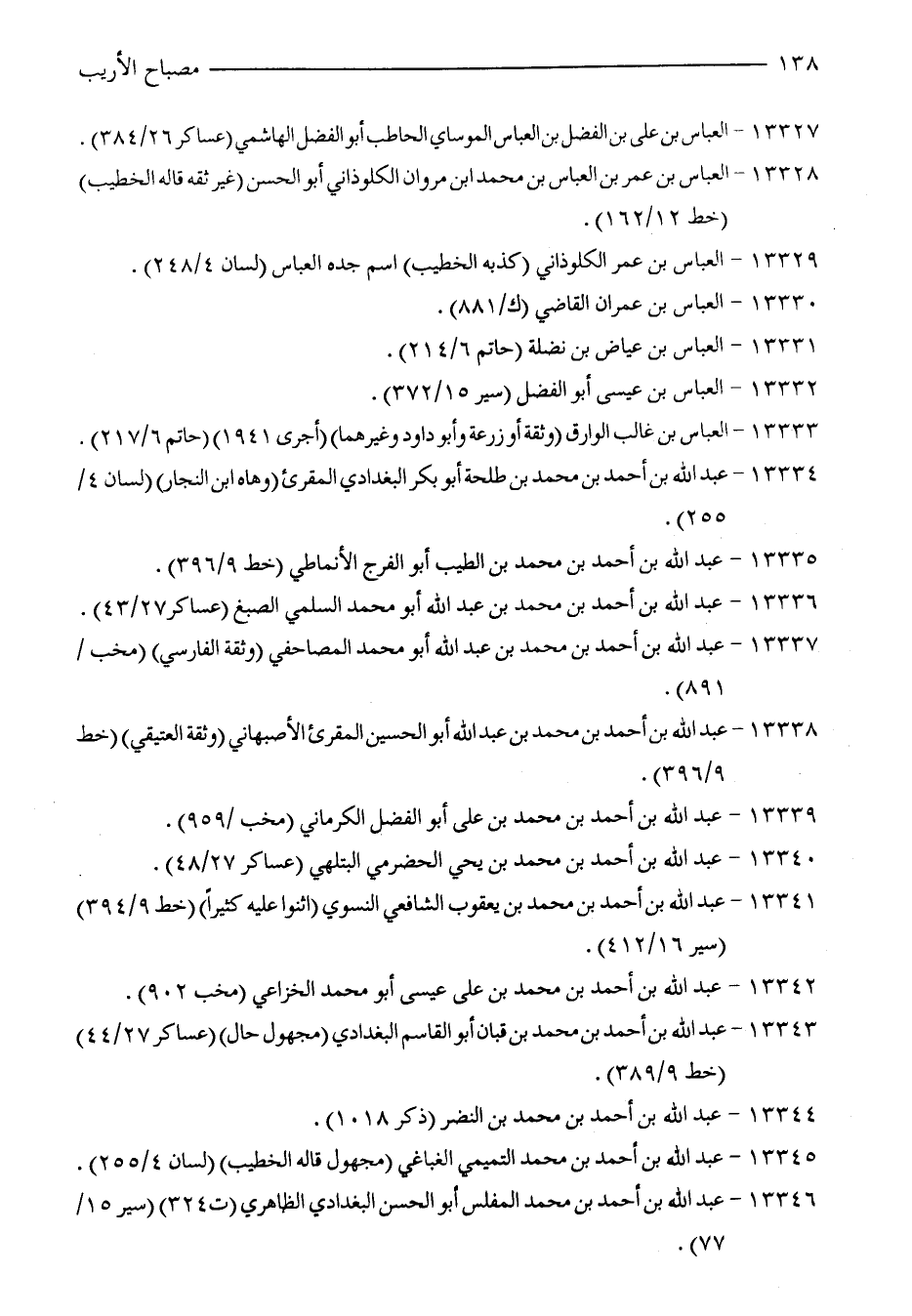 13334 - عبد الله بن أحمد بن محمّد بن طلحة أبو بكر البغدادي المُقرئ (وهاه ابن النجار) (لسان 4/ 255).