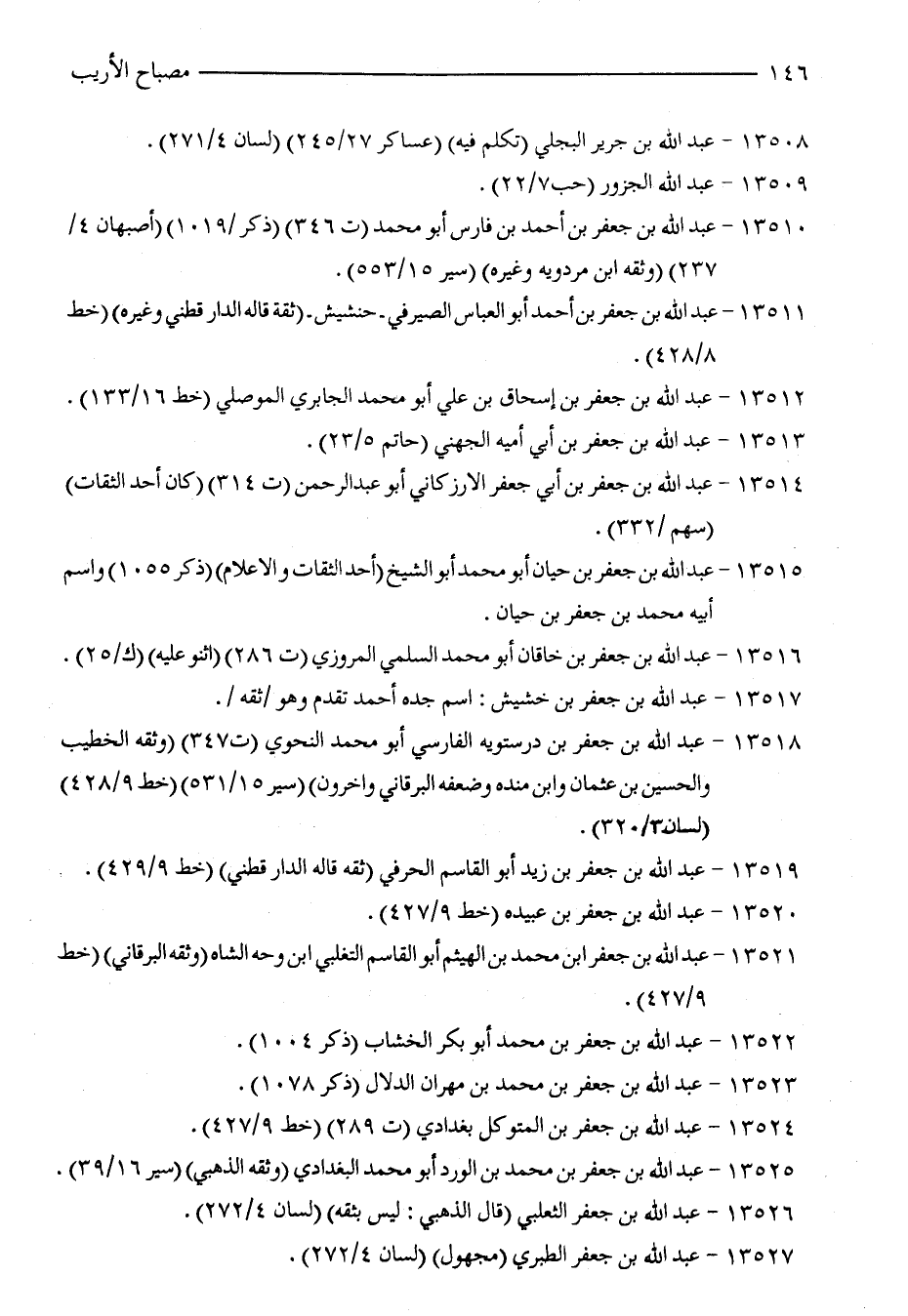 13521 - عبد الله بن جعفر ابن محمّد بن الهيثم أبو القاسم التغلبي ابن وحه الشاه (وثقه البرقاني) (خط 9/ 427).