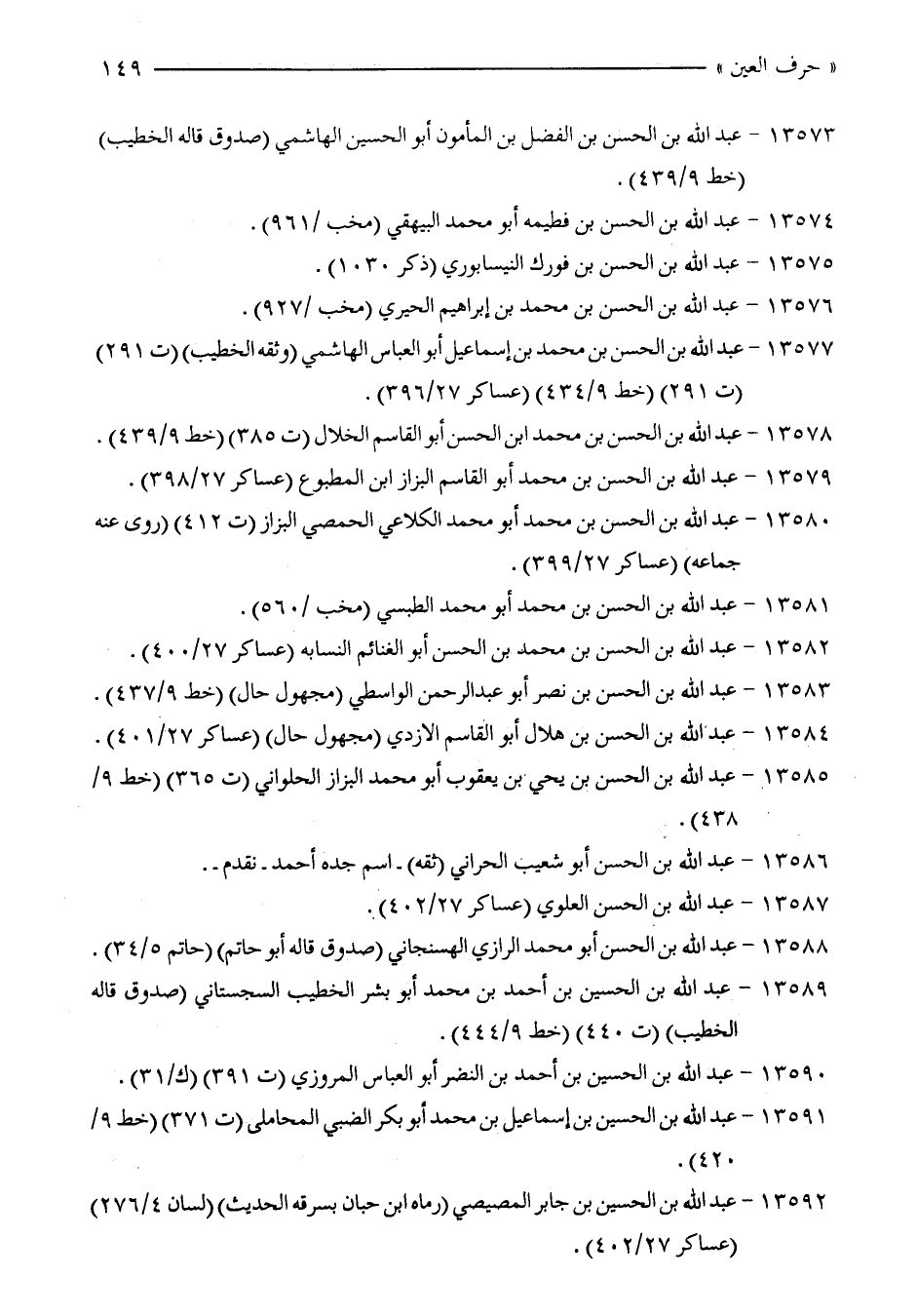 13589 - عبد الله بن الحسين بن أحمد بن محمّد أبو بشر الخطيب السجستاني (صدوق قاله الخطيب) (ت 440) (خط 9/ 444).