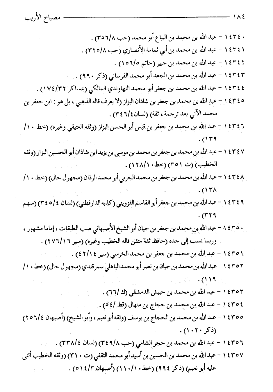 14355 - عبد الله بن محمّد بن الحجاج بن يوسف (وثقه أبو نعيم، وأبو الشيخ) (أصبهان 4/ 256) (ذكر 1020).