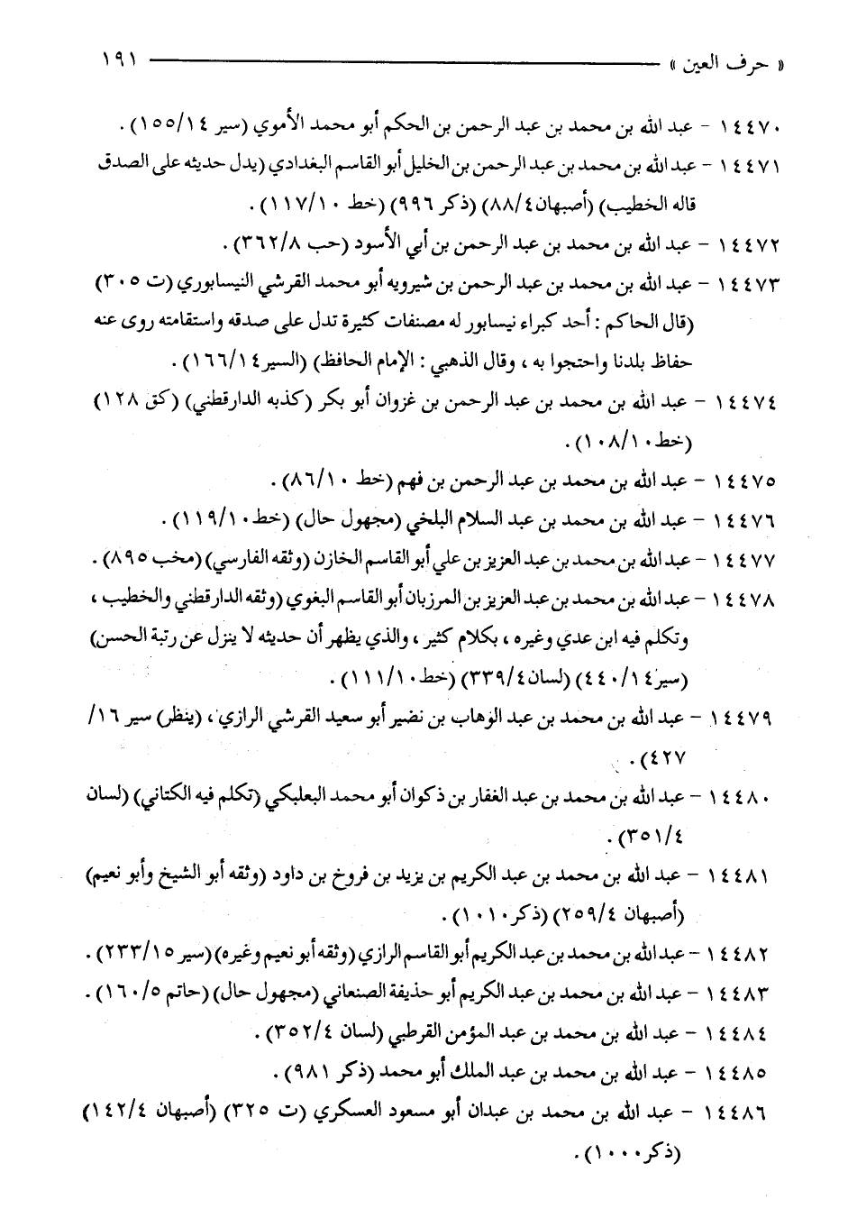 14486 - عبد الله بن محمّد بن عبدان أبو مسعود العسكري (ت 325) (أصبهان 4/ 142) (ذكر 1000).