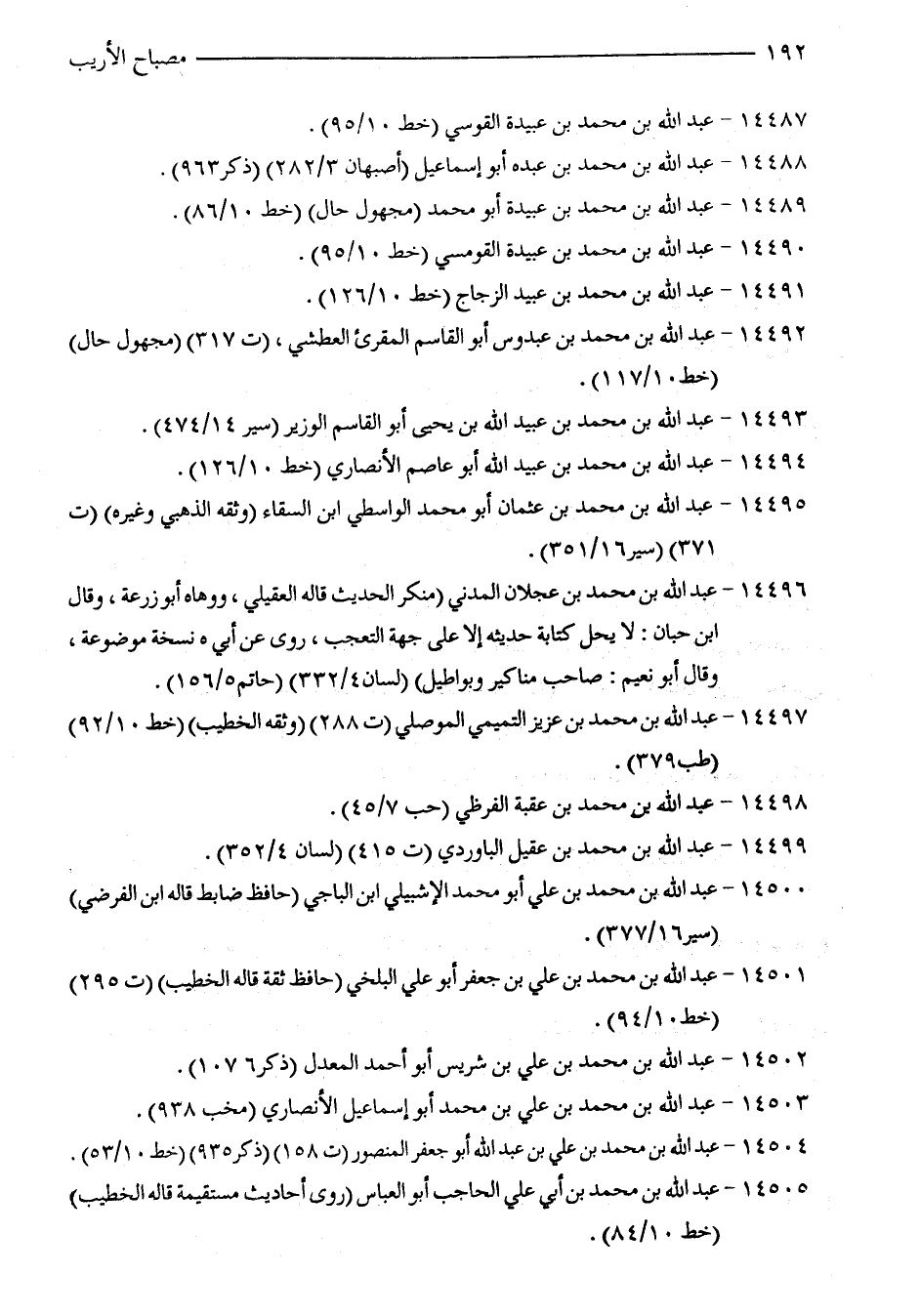 14497 - عبد الله بن محمّد بن عزيز التميمي الموصلي (ت 288) (وثقه الخطيب) (خط 10/ 92) (طب 379).