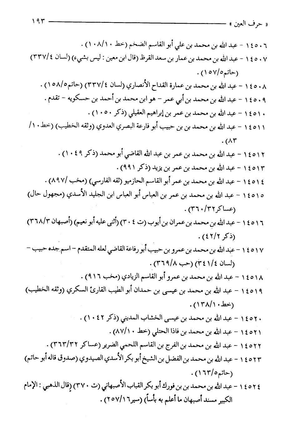 14516 - عبد الله ببن محمّد بن عمران بن أيوب (ت 304) (أثنى عليه أبو نعيم) (أصبهان 3/ 368) (ذكر 2/ 42).