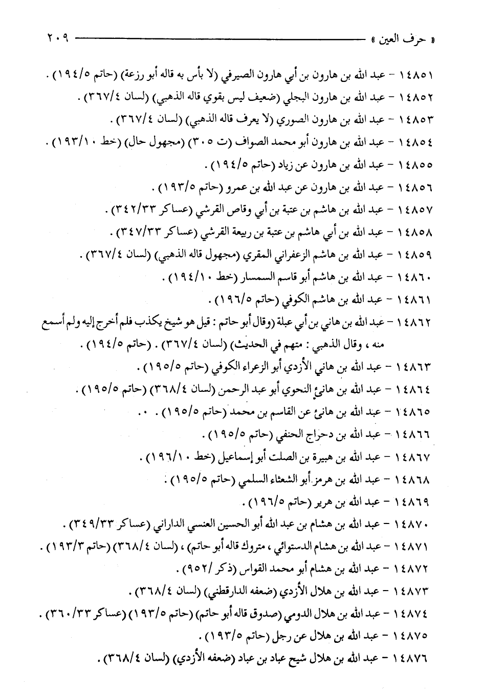 14861 - عبد الله بن هاشم الكوفي (حاتم 5/ 196).