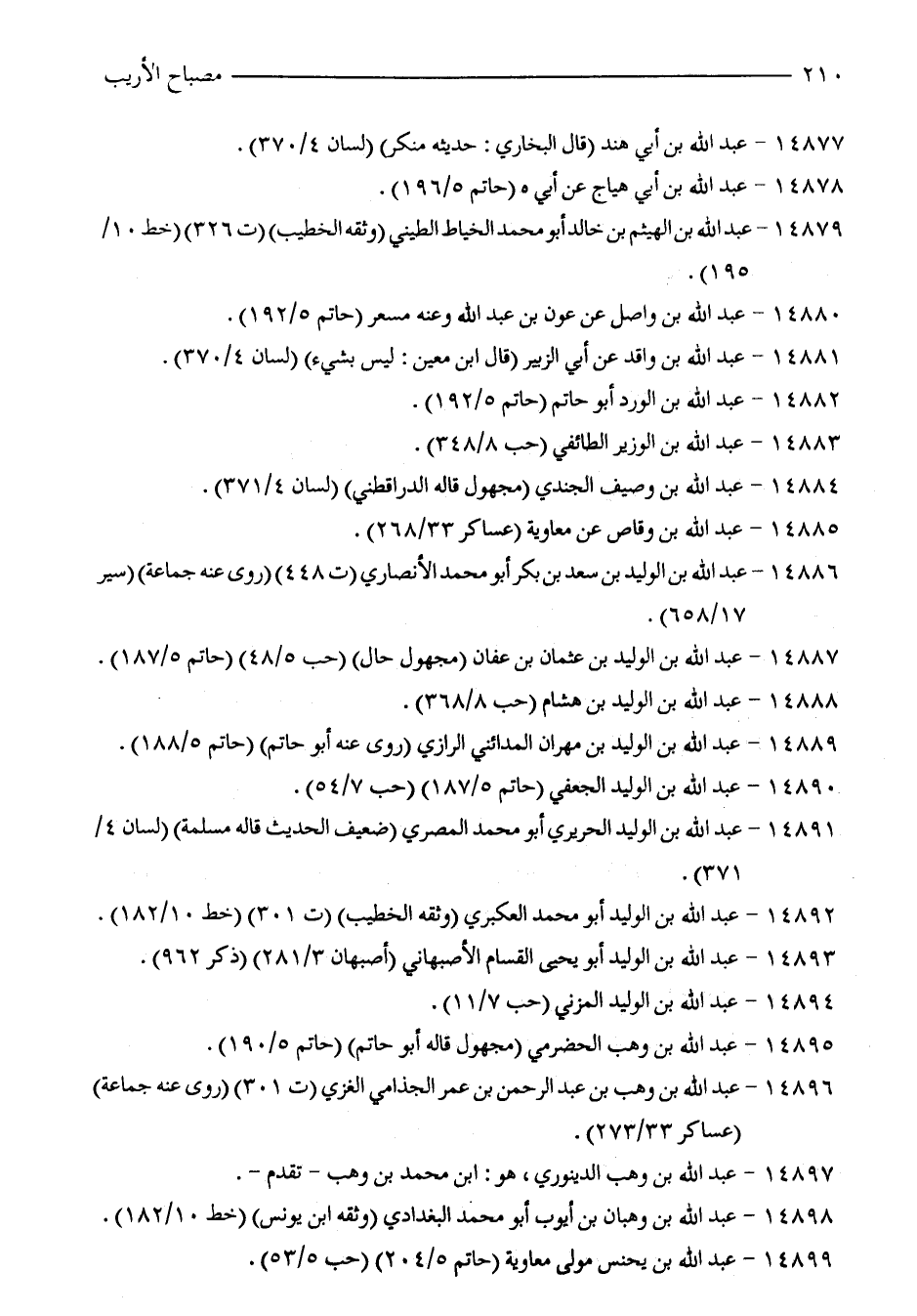 14892 - عبد الله بن الوليد أبو محمّد العكبري (وثقه الخطيب) (ت 301) (خط 10/ 182).