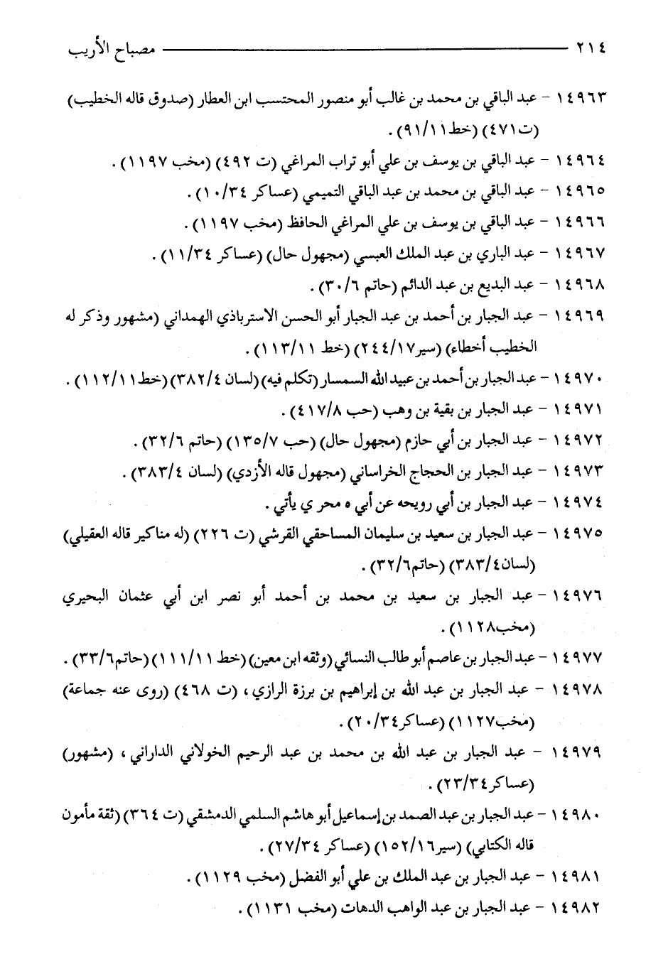 14978 - عبد الجبار بن عبد الله بن إبراهيم بن برزة الرازي، (ت 468) (روى عنه جماعة) (مخب 1127) (عساكر 20/ 34).