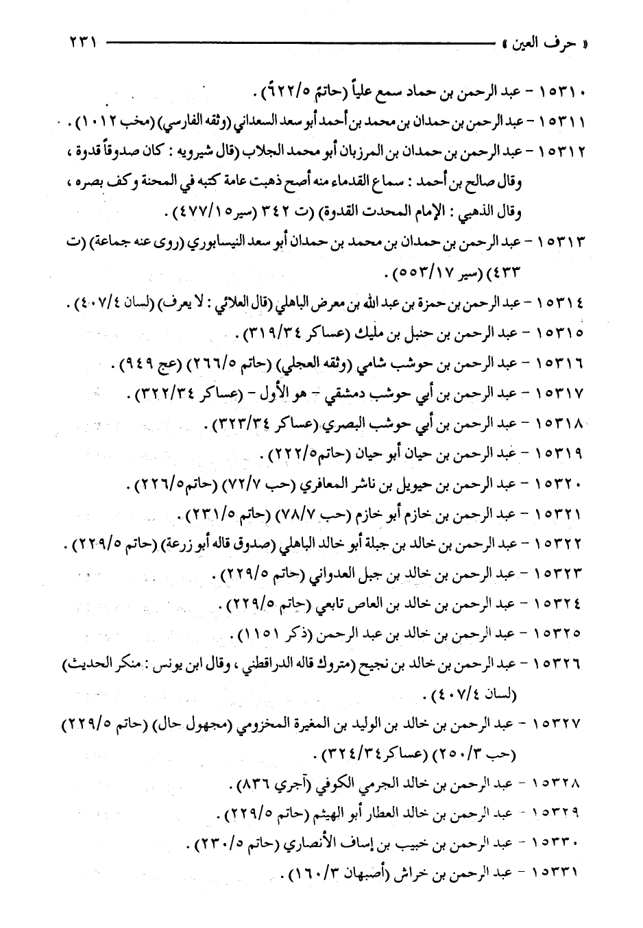 15329 - عبد الرحمن بن خالد العطار أبو الهيثم (حاتم 5/ 229).