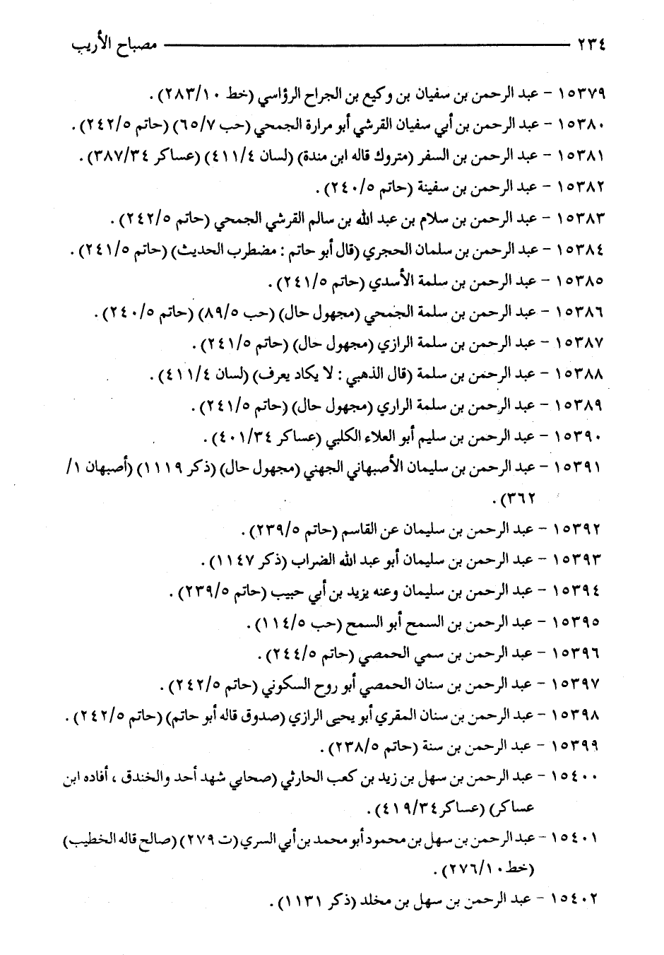 15381 - عبد الرّحمن بن السفر (متروك قاله ابن مندة) (لسان 4/ 411) (عساكر 34/ 387).