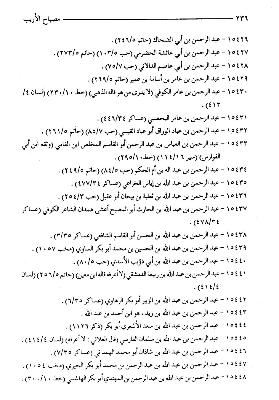 15431 - عبد الرّحمن بن عامر اليحصبي (عساكر 34/ 446).