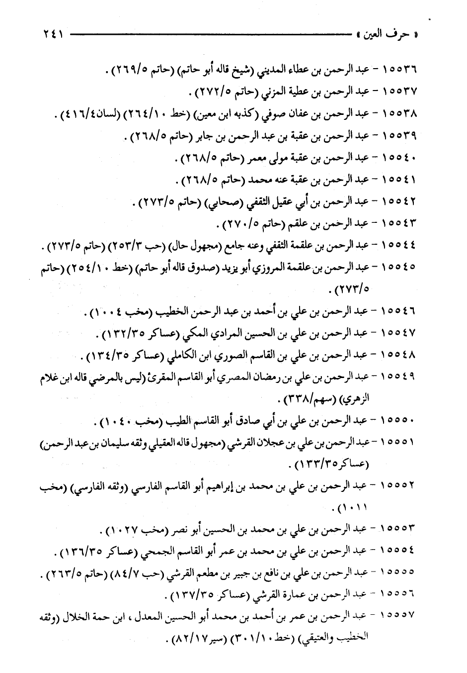 15538 - عبد الرّحمن بن عفان صوفي (كذبه ابن معين) (خط 10/ 264) (لسان 4/ 416).