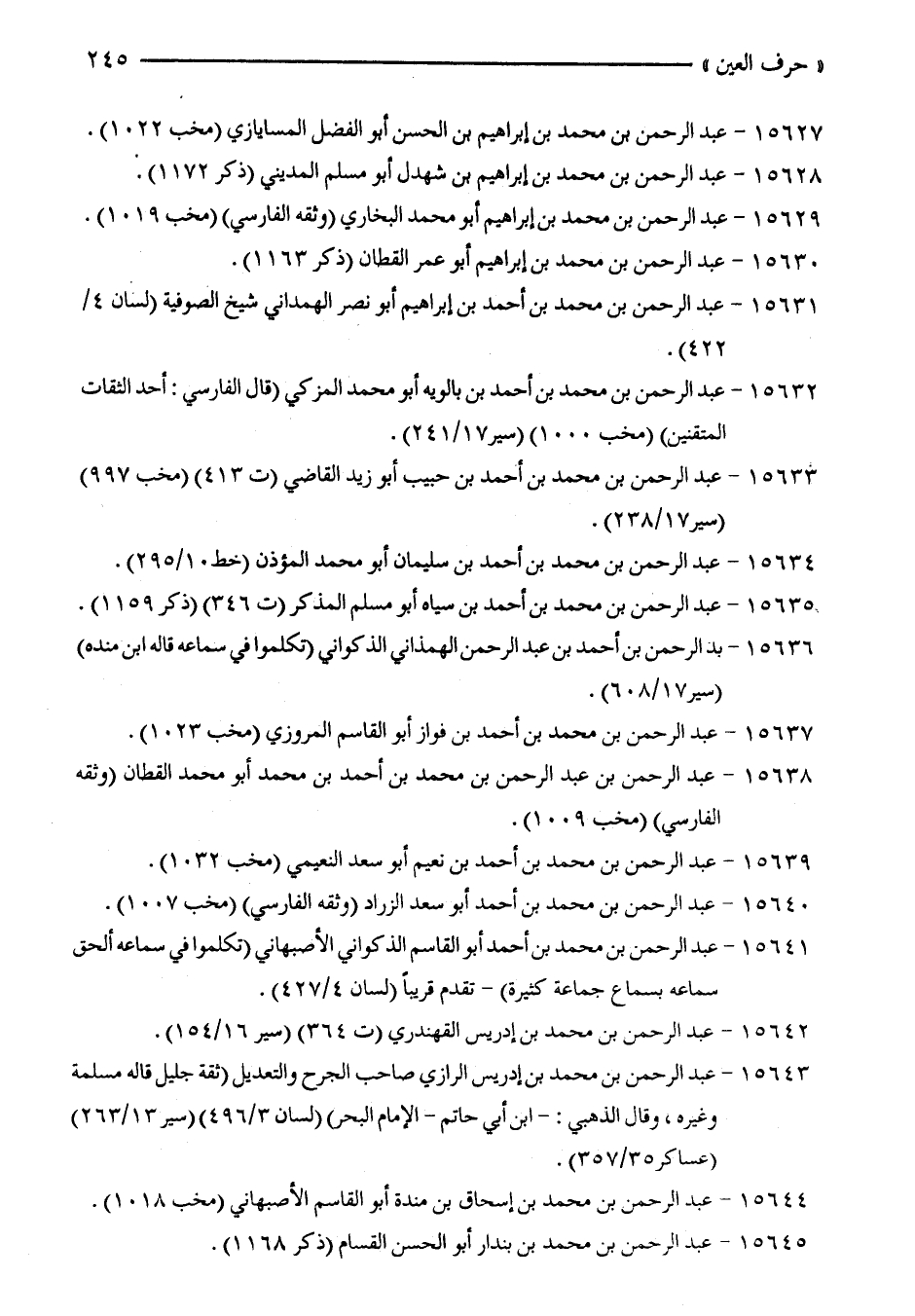 15640 - عبد الرّحمن بن محمّد بن أحمد أبو سعد الزراد (وثقه الفارسي) (مخب 1007).