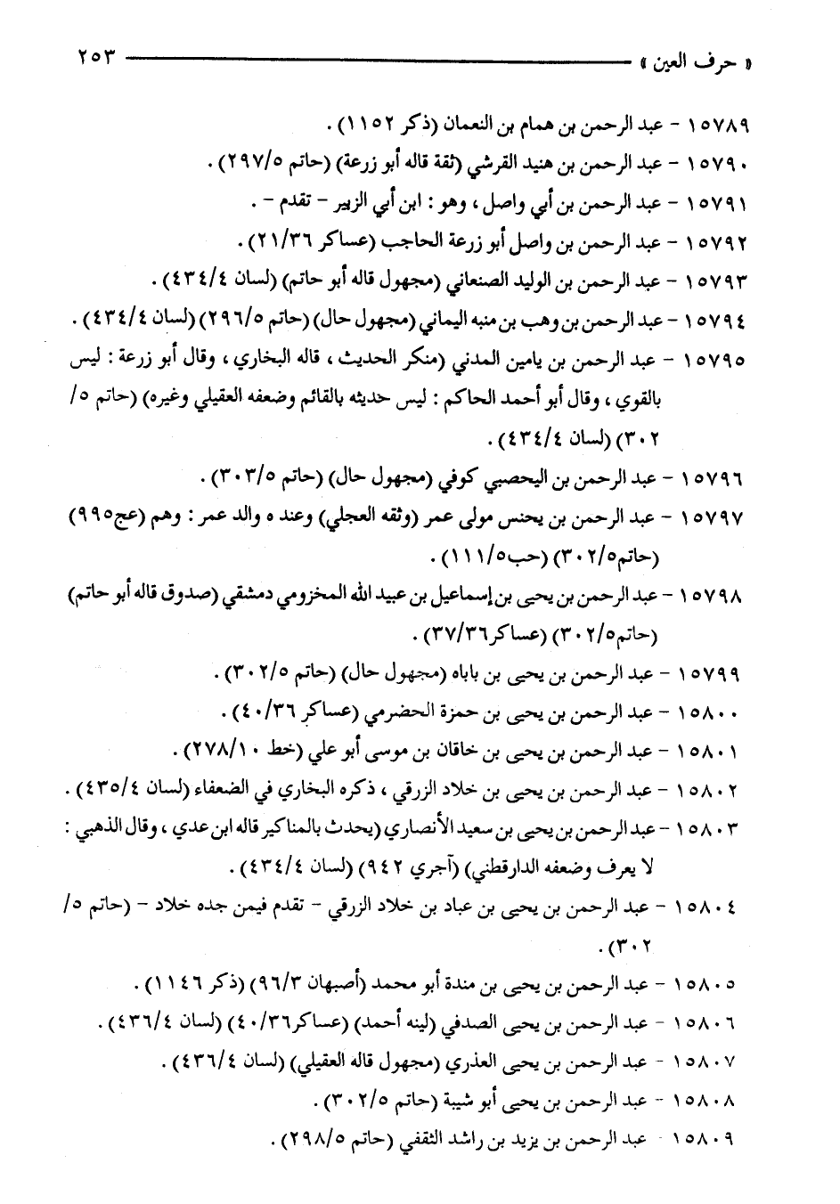 15806 - عبد الرّحمن بن يحيى الصدفي (لينه أحمد) (عساكر 36/ 40) (لسان 36/ 436).
