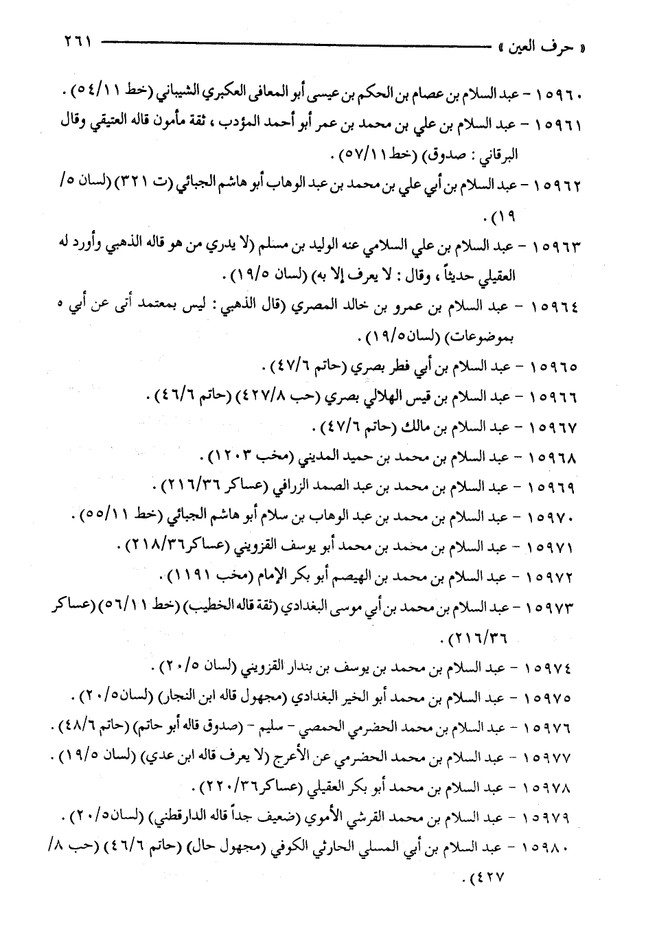 15960 - عبد السّلام بن عصام بن الحكم بن عيسى أبو المعافى العكبرى الشيباني (خط 11/ 54).