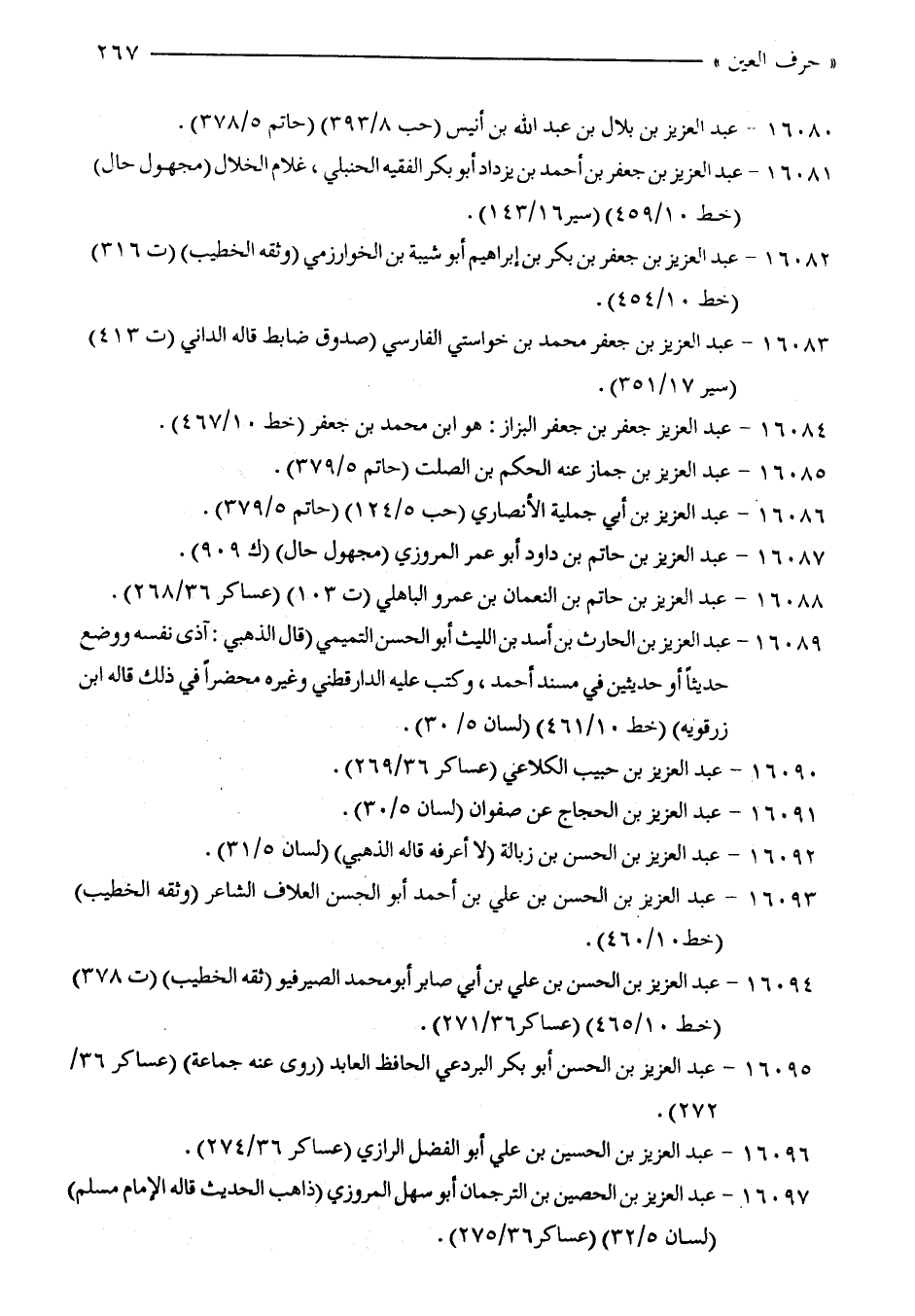16084 - عبد العزيز جعفر بن جعفر البزاز: هو ابن محمّد بن جعفر (خط 10/ 467).