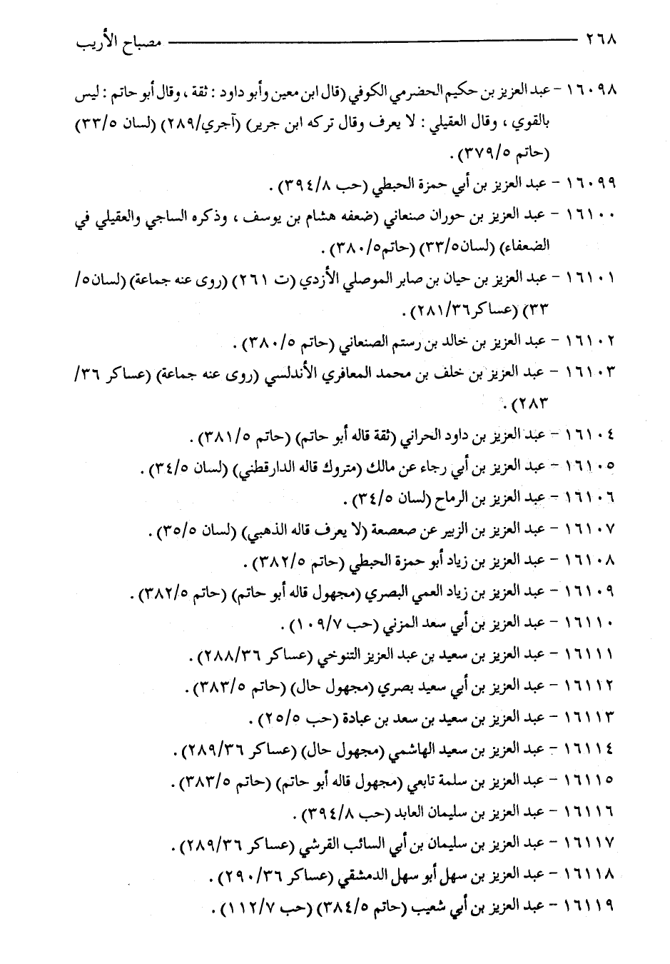 16101 - عبد العزيز بن حيان بن صابر الموصلي الأزدي (ت 261) (روى عنه جماعة) (لسان 5/ 33) (عساكر 36/ 281).