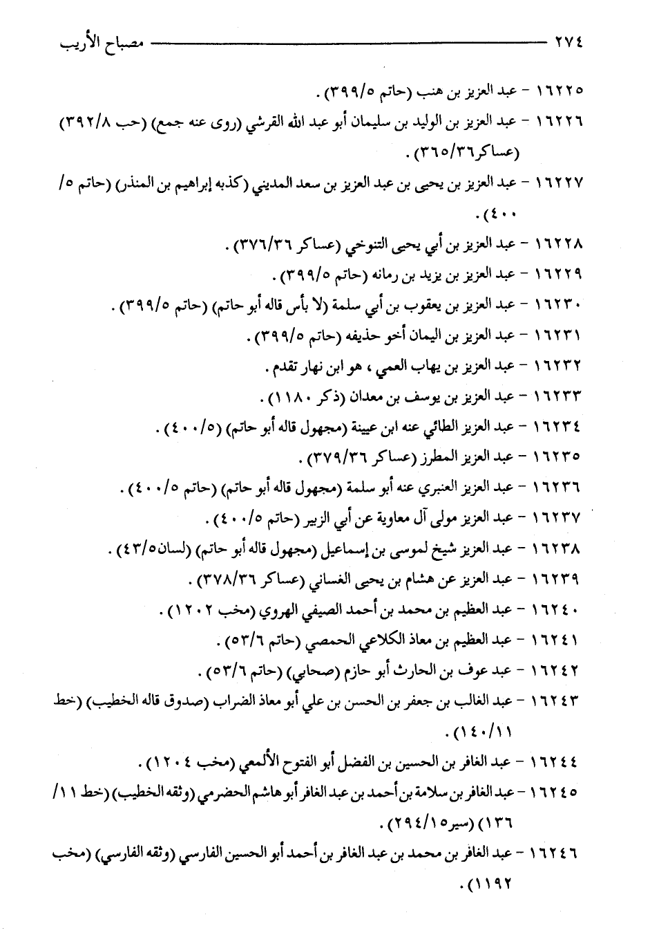 16234 - عبد العزيز الطائي عنه ابن عيينة (مجهول قاله أبو حاتم) (5/ 400).