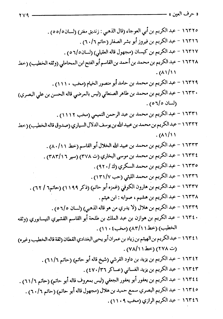16325 - عبد الكريم بن أبي العوجاء (قال الذهبي: زنديق مغتر) (لسان 5/ 55).