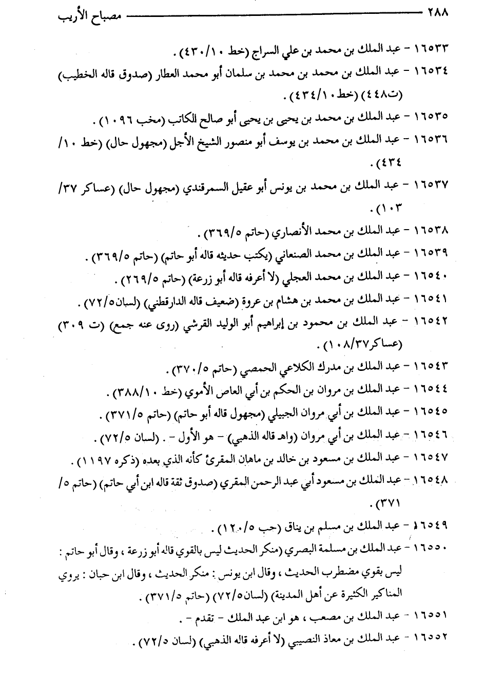 16534 - عبد الملك بن محمد بن محمد بن سلمان أبو محمد العطار (صدوق قاله الخطيب) (ت 448) (خط 1/ 434).