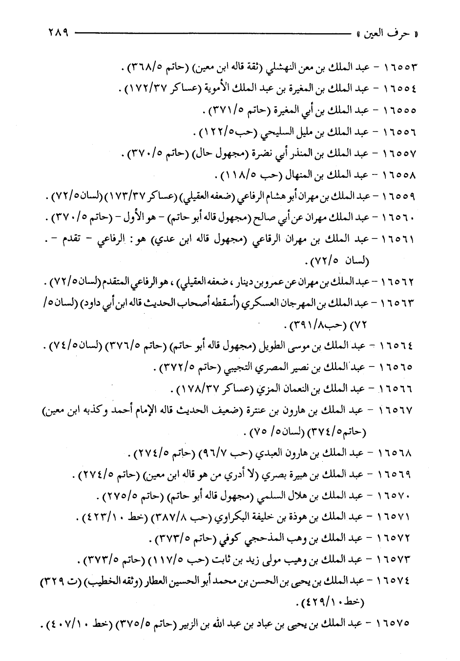 16575 - عبد الملك بن يحيى بن عباد بن عبد الله بن الزبير (حاتم 5/ 375) (خط 10/ 407).