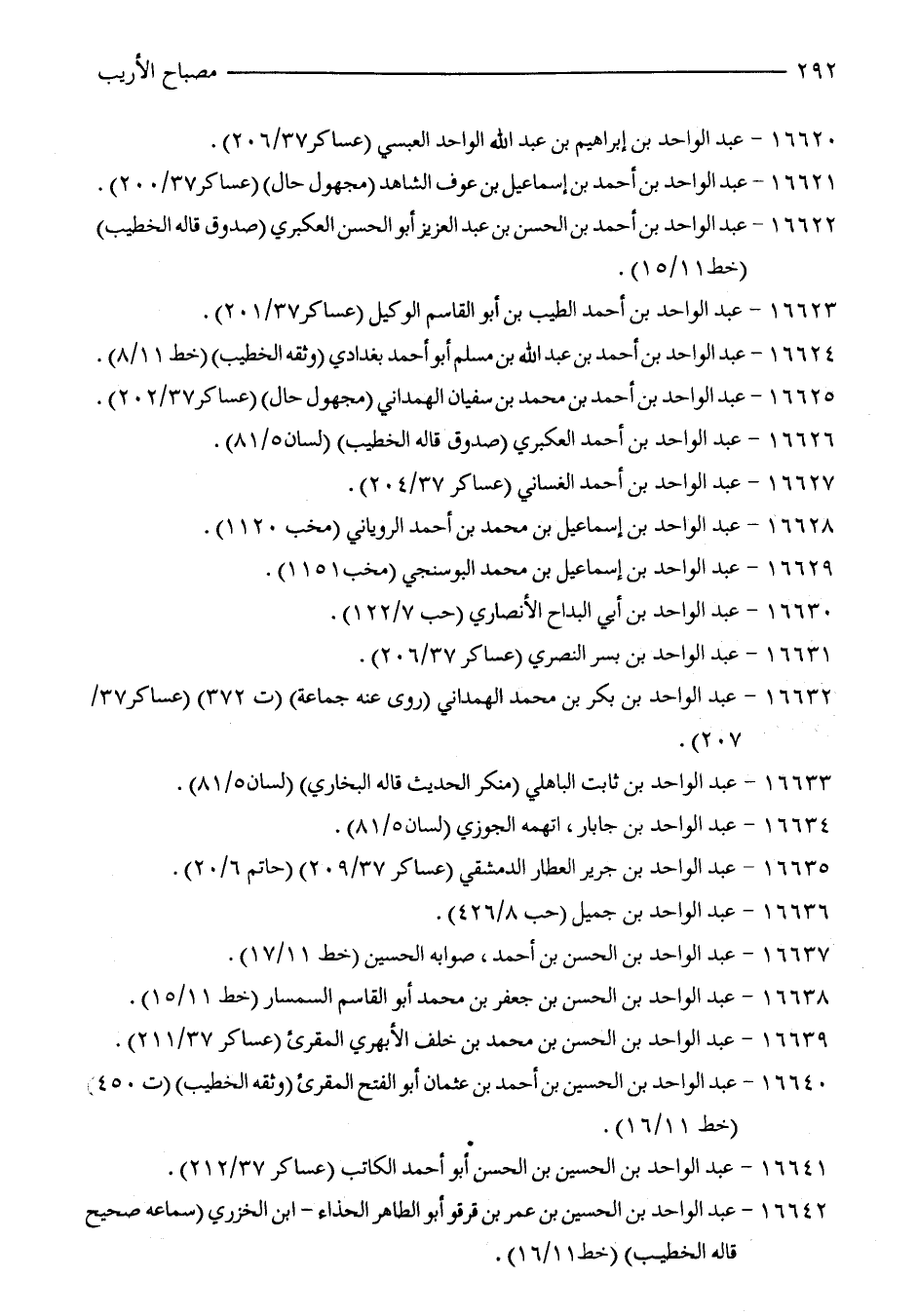 16626 - عبد الواحد بن أحمد العكبري (صدوق قاله الخطيب) (لسان 5/ 81).